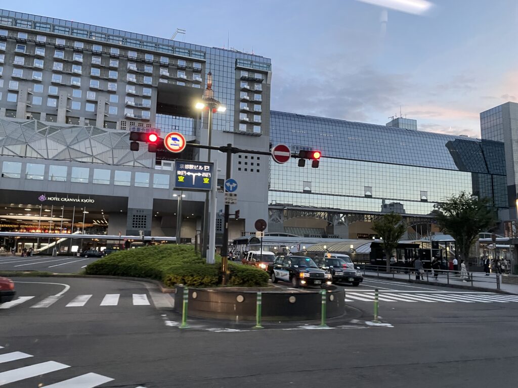 バスロータリーを出て、京都駅正面の交差点を通過した時点で、時間はすでに10分経過の17時56分です。。