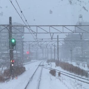 しばし悩みましたが、この雪を見て敦賀行きの列車を見送ることとしました。