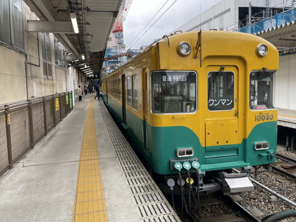 This is a Keihan Railway express train that once ran between Kyoto and Osaka.