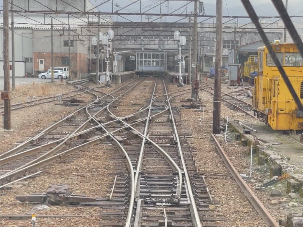 The parallel railway line belongs to the Ainokaze Toyama Railway, which was separated from JR West’s management following the opening of the Hokuriku Shinkansen.